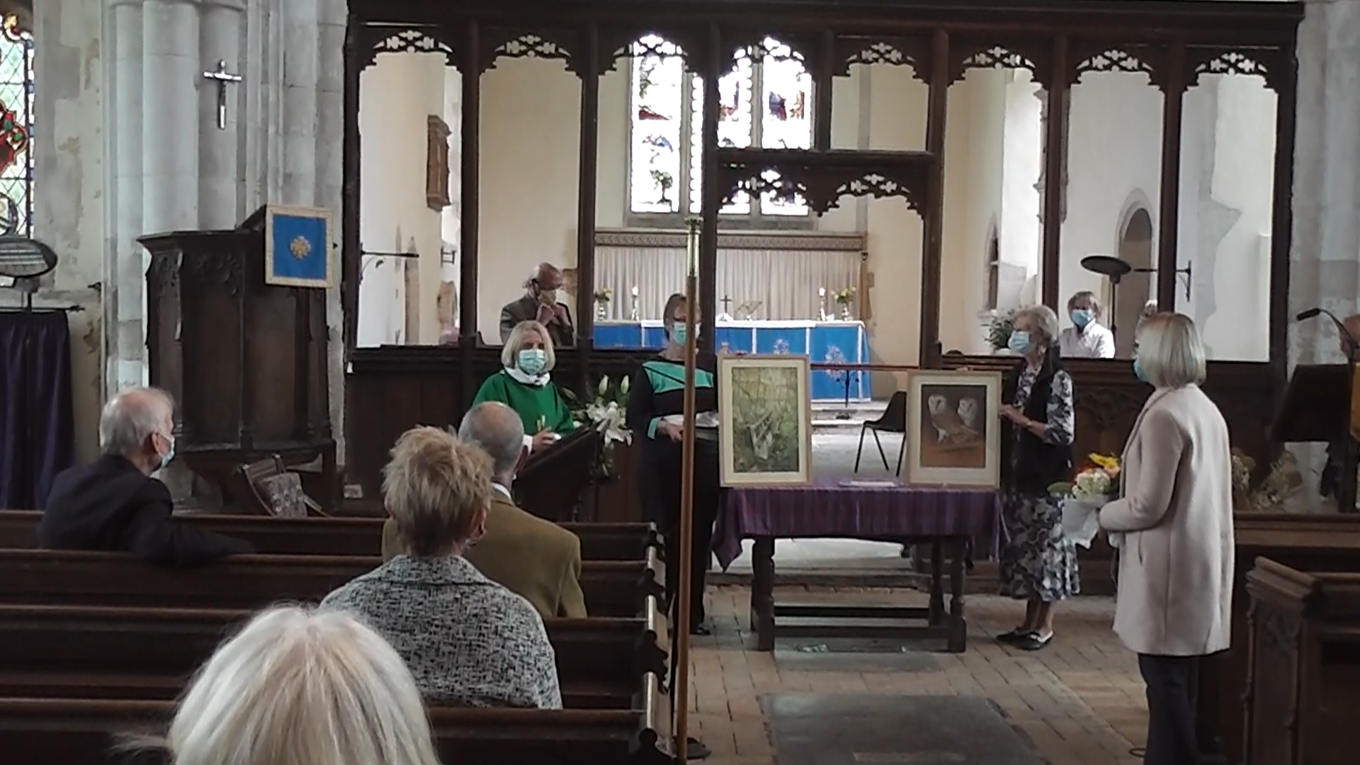 With great sadness, we said goodbye on 30 August to Rosemary as she officiated at her last service as Priest in Charge of the Benefice. After a very well attended and beautiful service, Simon Gash made a heartfelt speech of thanks, as Rosemary was presented with gifts of paintings, flowers and chocolates, bought as a result of very generous contributions made by all the parishes in the Benefice.