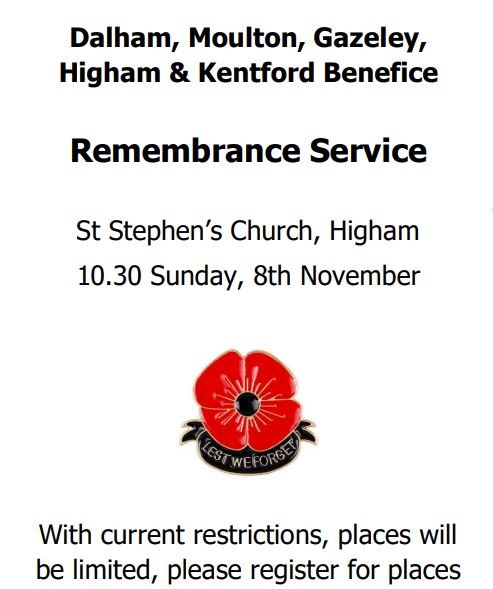 October 28, 2020 by lynnpilsworth Benefice Remembrance Service REGISTER HERE Enquiries: Robin Barclayrobindbarclay@gmail.com07767831235 Share this: Click to share on X (Opens in new window) X Click to share on Facebook (Opens in new window) Facebook Like Loading...