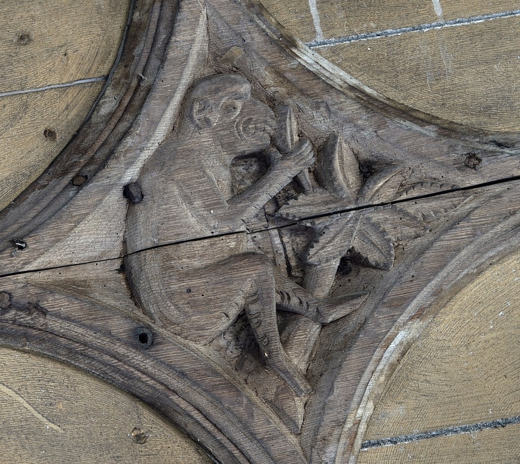 We have a splendid exhibition of photographs of the sixteenth century carvings on the chancel wagon roof. These fascinating carvings are extremely rare, some are possibly unique, and depict ordinary people, animals and mythical creatures.